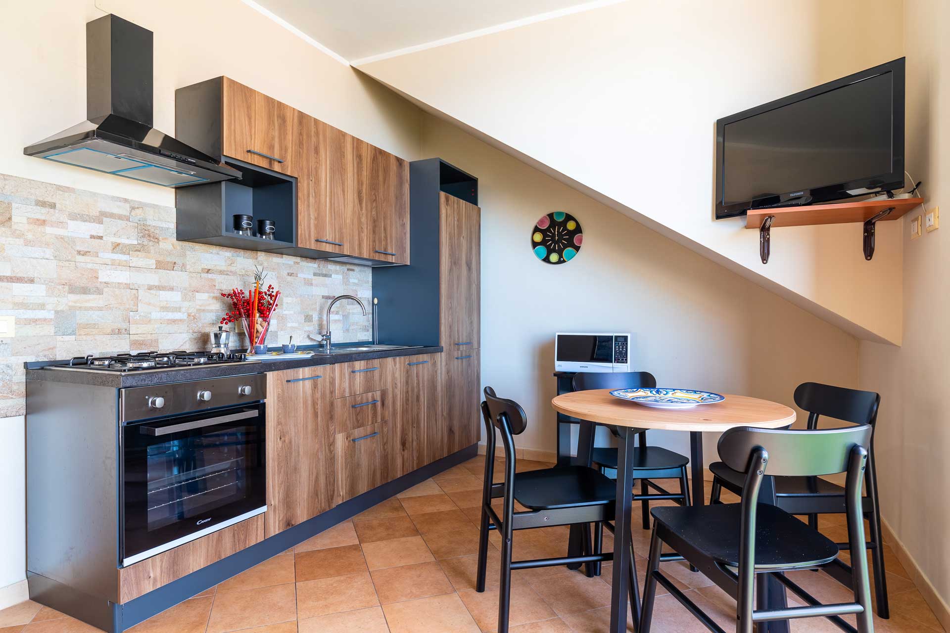A pochi metri il centro del paese, con ristoranti, bar e tutto ciò che serve, lontana comunque abbastanza dalla movida per non soffrire il frastuono serale.