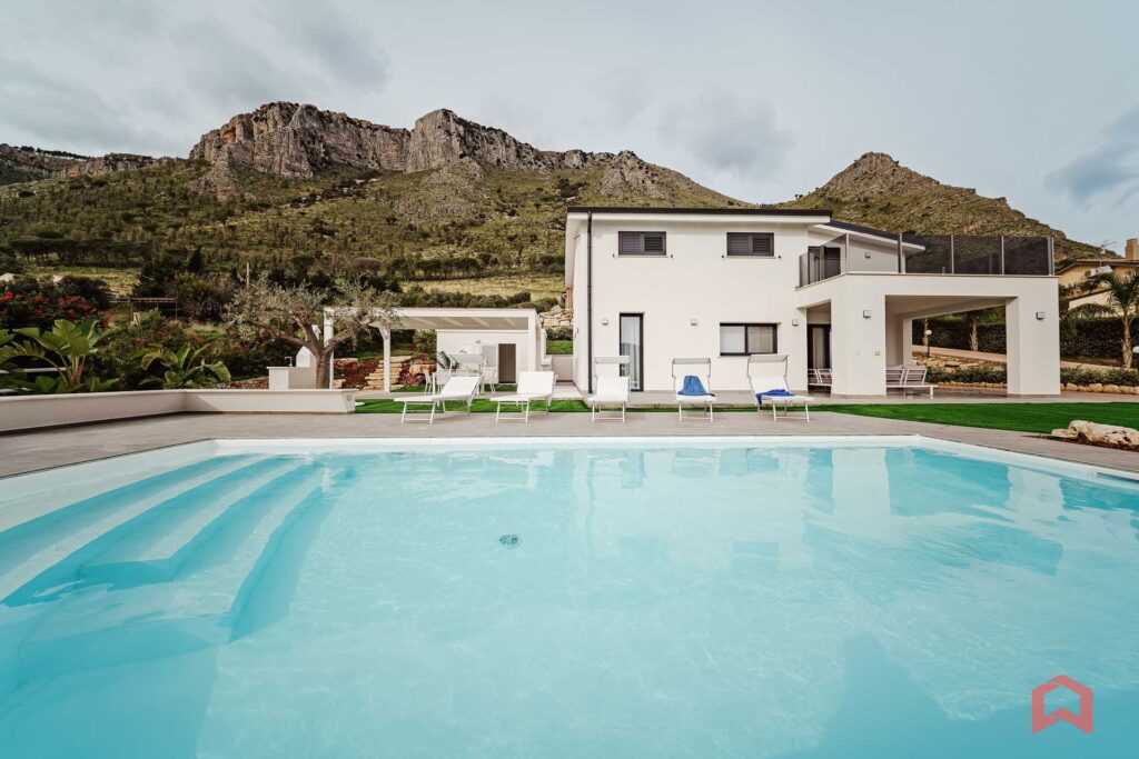 An elegant, newly built villa immersed in the natural setting of Castellammare del Golfo. It offers a private pool, parking, barbecue area, Wi-Fi, washing machine, and dishwasher. It features three double bedrooms, each with a private bathroom, plus an outdoor bathroom with a shower. Close to hiking trails and major natural attractions, it is the ideal retreat for those who love the sea and mountains, combining rugged charm and relaxation. You’ll be spoiled for choice. Privacy, comfort, and modern design complete the experience.