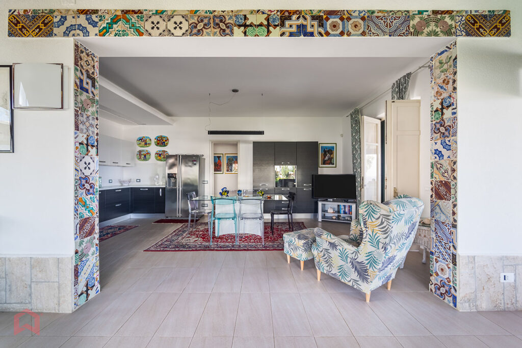 A unique villa, with a lively elegance and embellished with colorful and prestigious examples of local craftsmanship, in a strategic location with sea views and a private pool where you can spend a relaxing vacation.