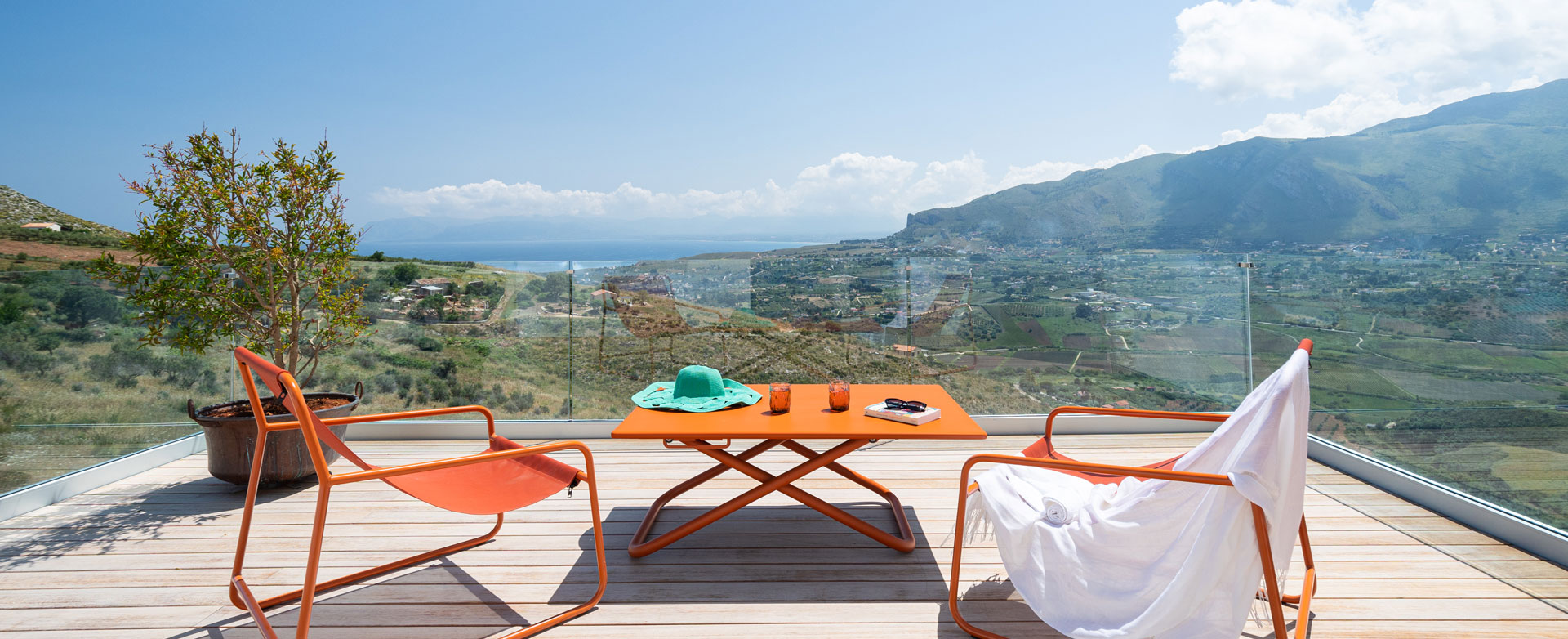 This Villa is unique; olive and fruit trees on the slopes of a hill surround us, with the sea of Scopello in the background and an incredible view!