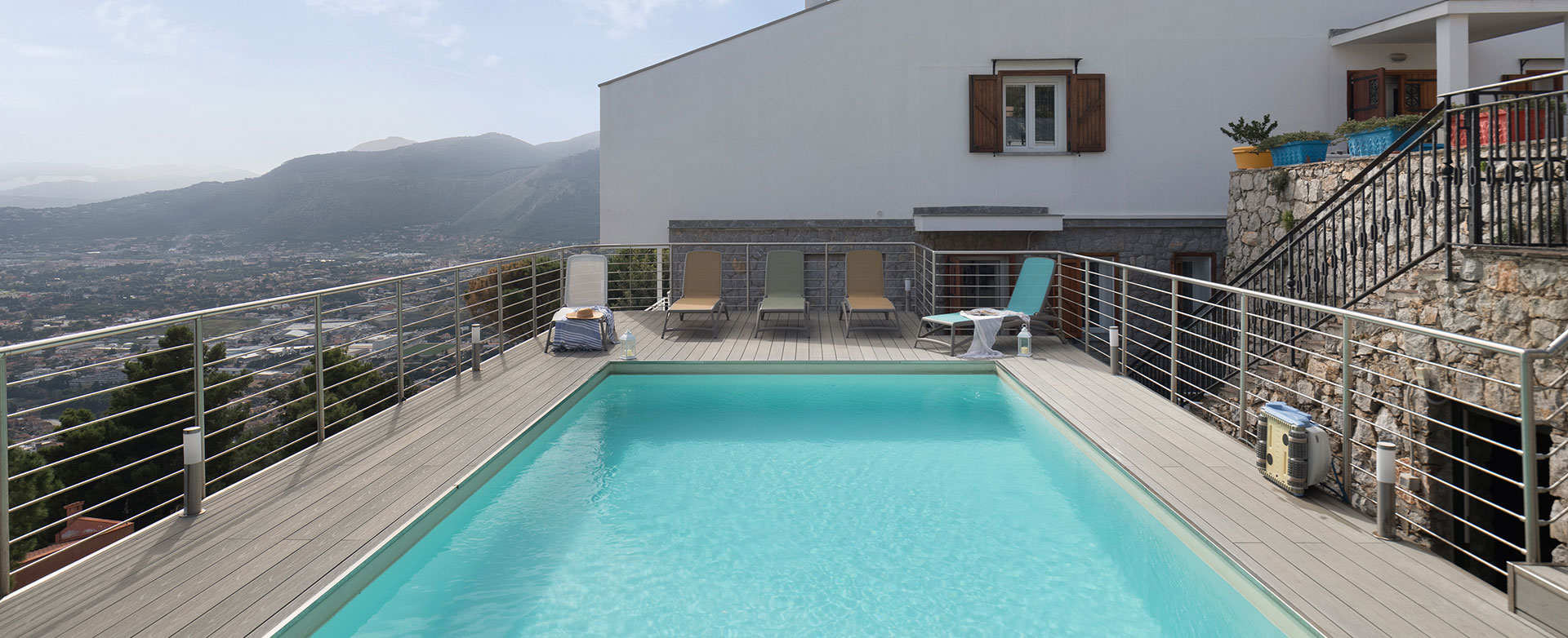 A Villa with Swimming Pool and a wonderful view of Mondello beach and Palermo.
